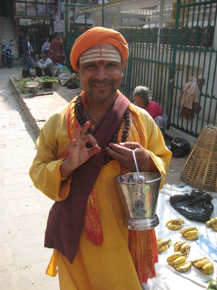 On Tuesday we did our own walking tours with directions from my Lonely Planet book. Our destination was the Kathmandu Durbar (palace) Square where the kings once lived. However, the Nepali people have recently voted to do away with the monarchy and try for a democratic form of government. The walks gave us a chance to become familiar with the architecture, history and religions of the country. Hinduism is the main religion with Buddhism second in size.