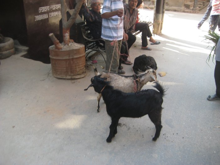goats since they are sacrificed and eaten. We saw lots of people leading