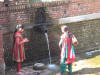 On Wednesday we had an official tour with one of our local guides, Krishna. This tour included visits to another "palace", the Patan Durbar Square. Patan is another city but it all seemed like part of the same place to us. This square was used during the 14th to 18th centuries as a royal palace and is a place of worship for Hindus and Buddhists. Krishna showed us a courtyard where they will slaughter bulls and goats and stuff tomorrow for part of the big festival.