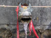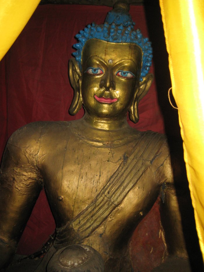 One of Muktinath's claims to fame is a big temple for both Hindus and Buddhists. There is a wall here with 108 icy cold streams pouring forth. A Hindu pilgrim can achieve a well-deserved salvation by bathing in all 108 showers. The water is also sacred and Krishna Panta collected some of it in an empty Coke bottle to take home to his family. Close by there is a Buddhist holy site inside a dark temple in which burns a tiny blue flame from a natural gas emission leaking through some flowing water.