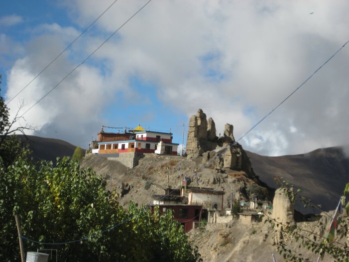 Marpha with its white walls and stone walkways is said to be one of Nepal's cleanest villages (well, that is setting the bar kind of low) and noted for its apple orchards. We liked it very much and enjoyed some apple pancakes and apple crumble with meals. We also visited another Buddhist temple which has a meditation center apparently catering to westerners.