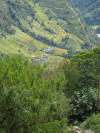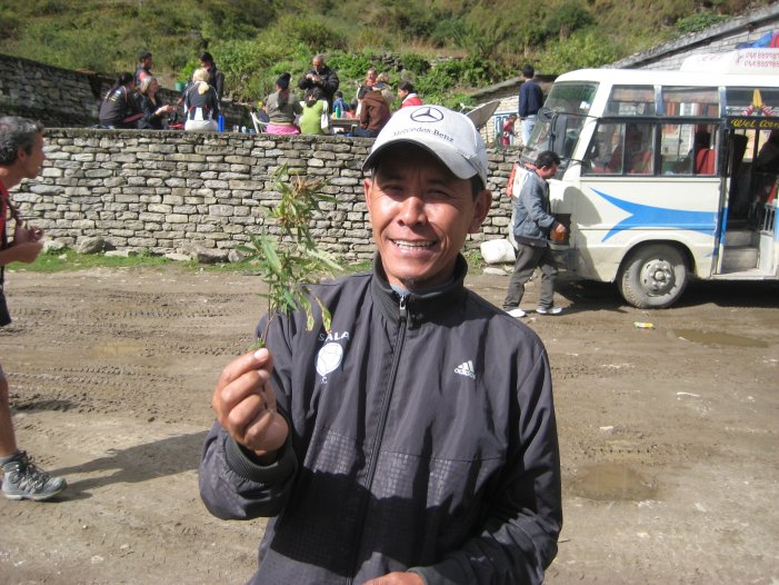 The six of us departed Marpha via bus for the village of Ghasa where we had to transfer bus lines to continue to our destination village of Tatopani. Ghasa is the dividing line between the districts of Mustang and ??. Along the way at a rest stop Shree showed us some marijuana plants growing wild beside the highway.