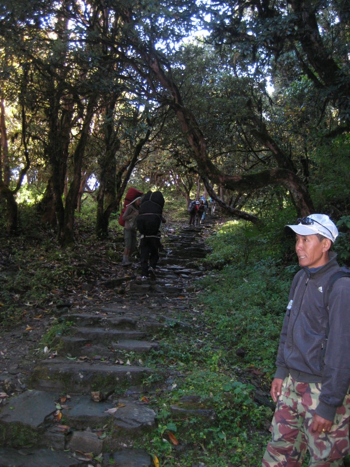 This was our last full day of trekking. After heavy rains during the night we got underway about 8:30 for a long downhill trek to our destination of Hille. The area was wet, humid and with much lush vegetation. We went through the famed rhododendron forests which are said to be beautiful during the Spring blossoms. The area is also said to be infested with leeches (yuk) during the monsoons.