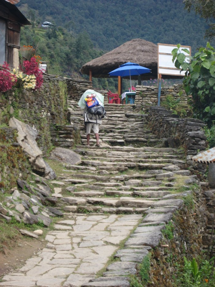 After leaving Ulleri we descended steeply about 1700 feet via over 3000 stone steps and we all had some sore calves for the next few days. We were glad not to be going up these stairs.