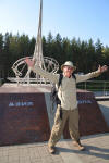 Along the way he stopped for photos of a monument marking the boundary between Europe and Asia. In the photo below I have one foot in Asia and the other in Europe.