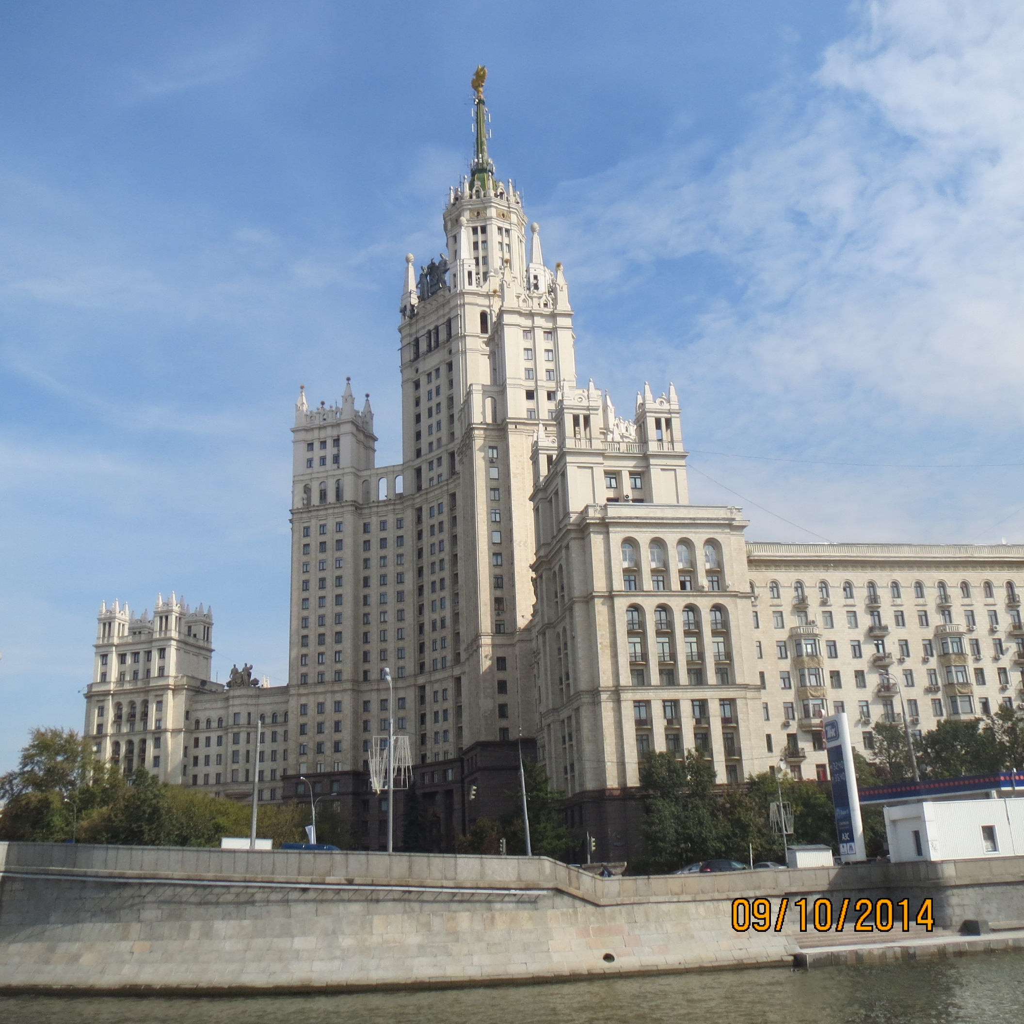 Wednesday we checked out of the Paragon to be ready for our 1650 departure on the Trans Siberian! We had some time for more explorations since our pick up from the hotel to Kazansky Train Station was not until 1530. We took a long metro ride to the Kiev Station, paid 500 rubles each and soon boarded a boat for a 1.5 hour tour down the Moscow River. There were nice forest along the shore (could have been Gorky Park?), some river mansions, great shots of us outside the Kremlin walls, views of a bizarre Peter the Great statue where he looks like a ship captain and some huge Stalin-era apartment buildings.