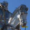 On the way to the ger lodge we stopped at Mongolia's most unique and impressive site! It is a 10 story tall, stainless steel statue of their national hero, Genghis Khan. "In Soviet times" any discussion of this hero was suppressed since the communist rulers feared a nationalist uprising. However, today the Mongolian's pride in their history is fully expressed. This statue was built in 2006 to honor the 800 year anniversary of the establishment of the great Mongol empire.