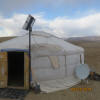 Later Ulziimaa took us to visit an authentic nomad's ger and family. The lady of the ger served us Mongolian tea (boiling water, fresh cow's milk, salt and tea leaves), candy, bread and some kind of hard yogurt "bread". Her husband is well known as a good wolf hunter and their daughter is off to Beijing studying to be a doctor while their son will follow his father as a horse and cattle rancher. This was their Fall camp and they were soon going to move to a winter camp down by the river somewhere. Even though they follow the ancient nomad's way of life they did have a modern TV, solar electricity panels, satellite dish, truck and, of course, a mobile phone.