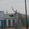 We had a 1st class cabin for the ride to Beijing, China. Although, we shared a semi-private bathroom and had a nice chair we decided that 2nd class was better because here we had no room for storage in our berth! Some of the folks from our last train were also on this one so we did some more visiting with travelers. Also, the dining car was very busy and meals quite expensive. We also spotted the only wild life of the entire trip as we headed south. I saw a fox, a big hawk, antelope and several herds of two hump camels. Mostly, there was nothing to see but vast and barren landscape. We did a short stop at the Choyr station with a statue recognizing Mongolia's very own cosmonaut. Beyond Choyr we entered the famous Gobi Desert and it was raining! This part of the Gobi is not sandy but very similar in appearance to the deserts of the southwestern USA.