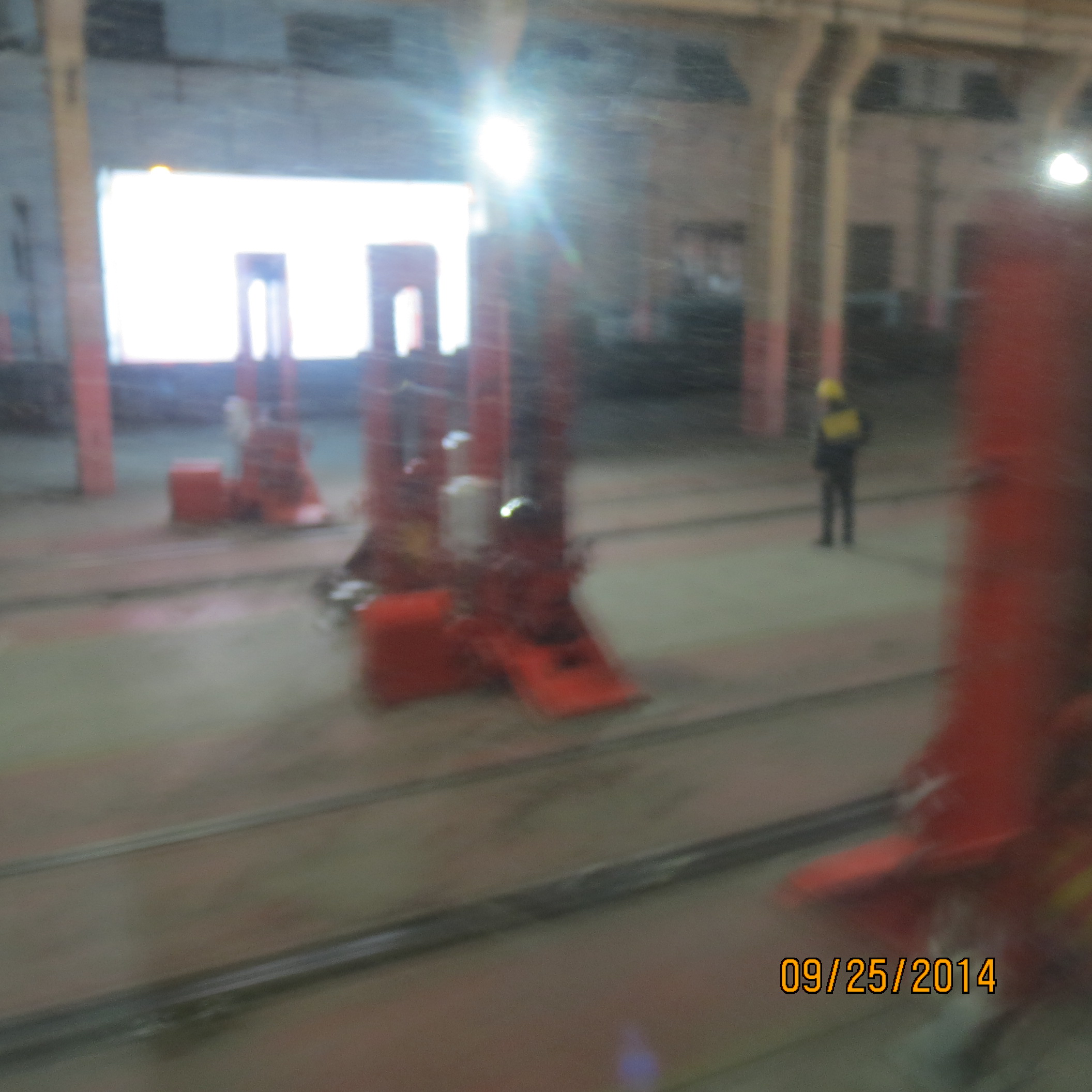 The long toilet wait at Er Lian was compensated by watching the "bogey" changing procedure. The Chinese use a track width different from those of Russia and Mongolia. Hence, they change the wheels on the train (also called "bogeys"). Our entire train was driven into a huge shed and each car was disconnected on parallel tracks inside the shed. Huge hydraulic jacks then lift each car, the wheels are rolled out and new ones rolled in for the Chinese train tracks. Unfortunately, I did not get good photos through the train windows but these out of focus images will give readers an idea of the process.