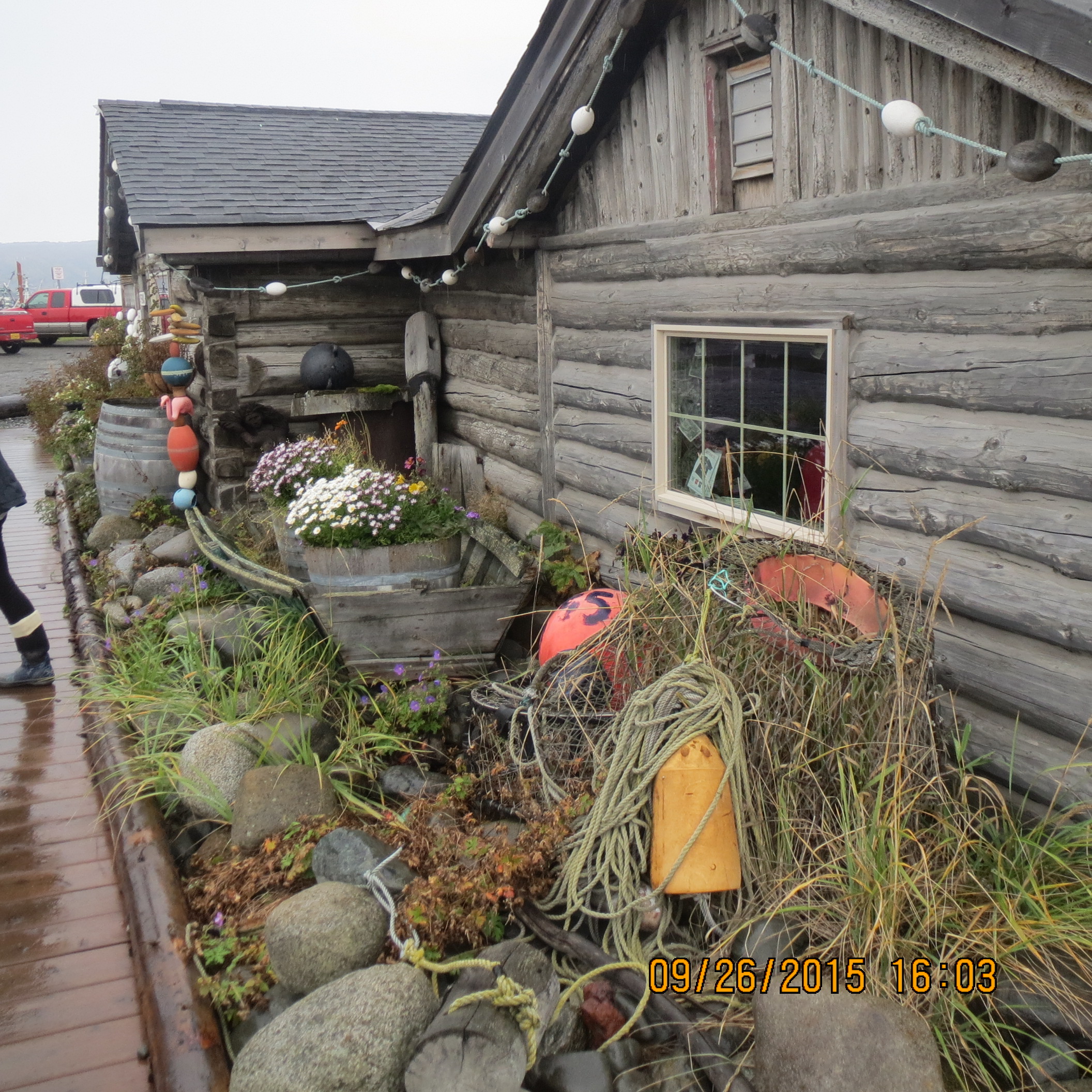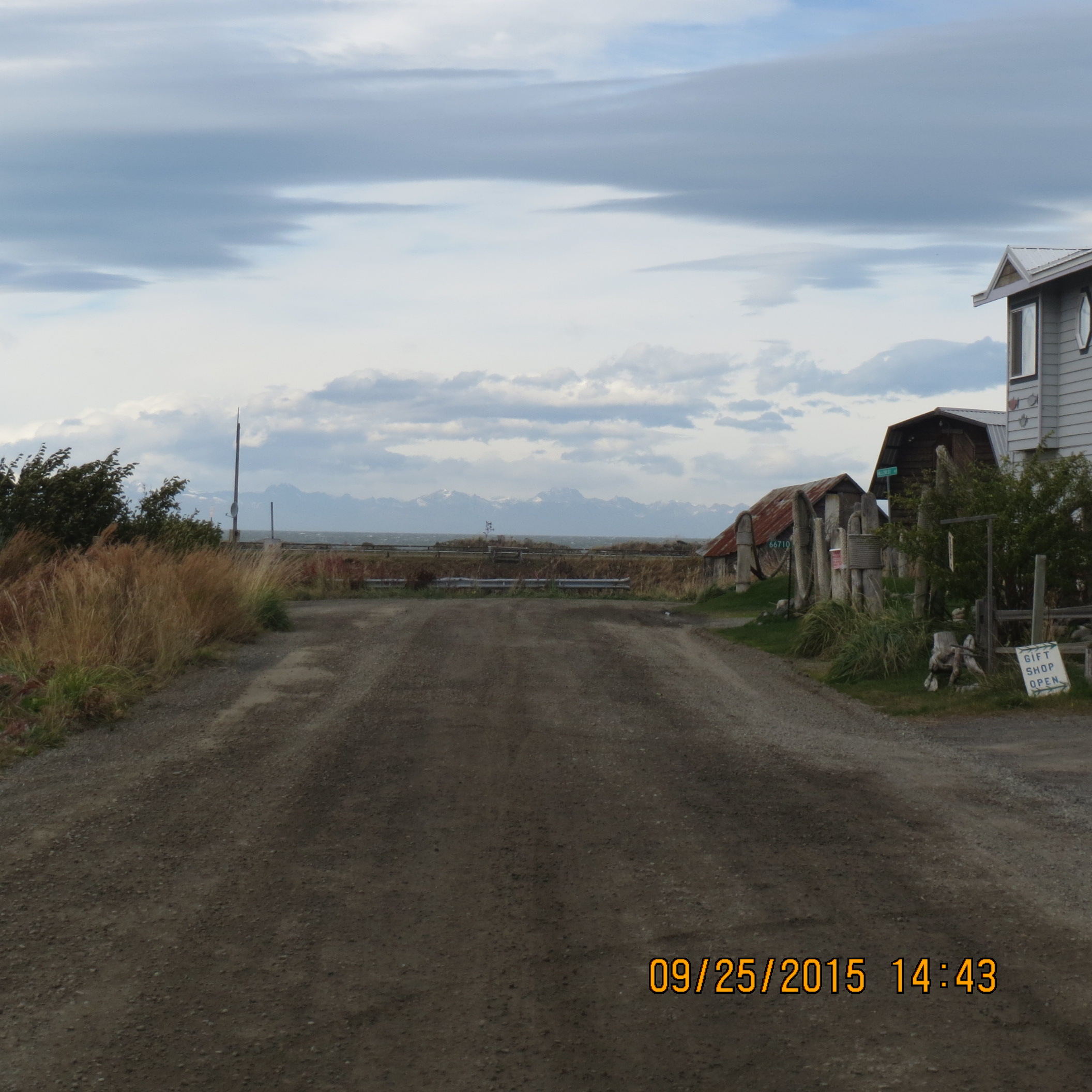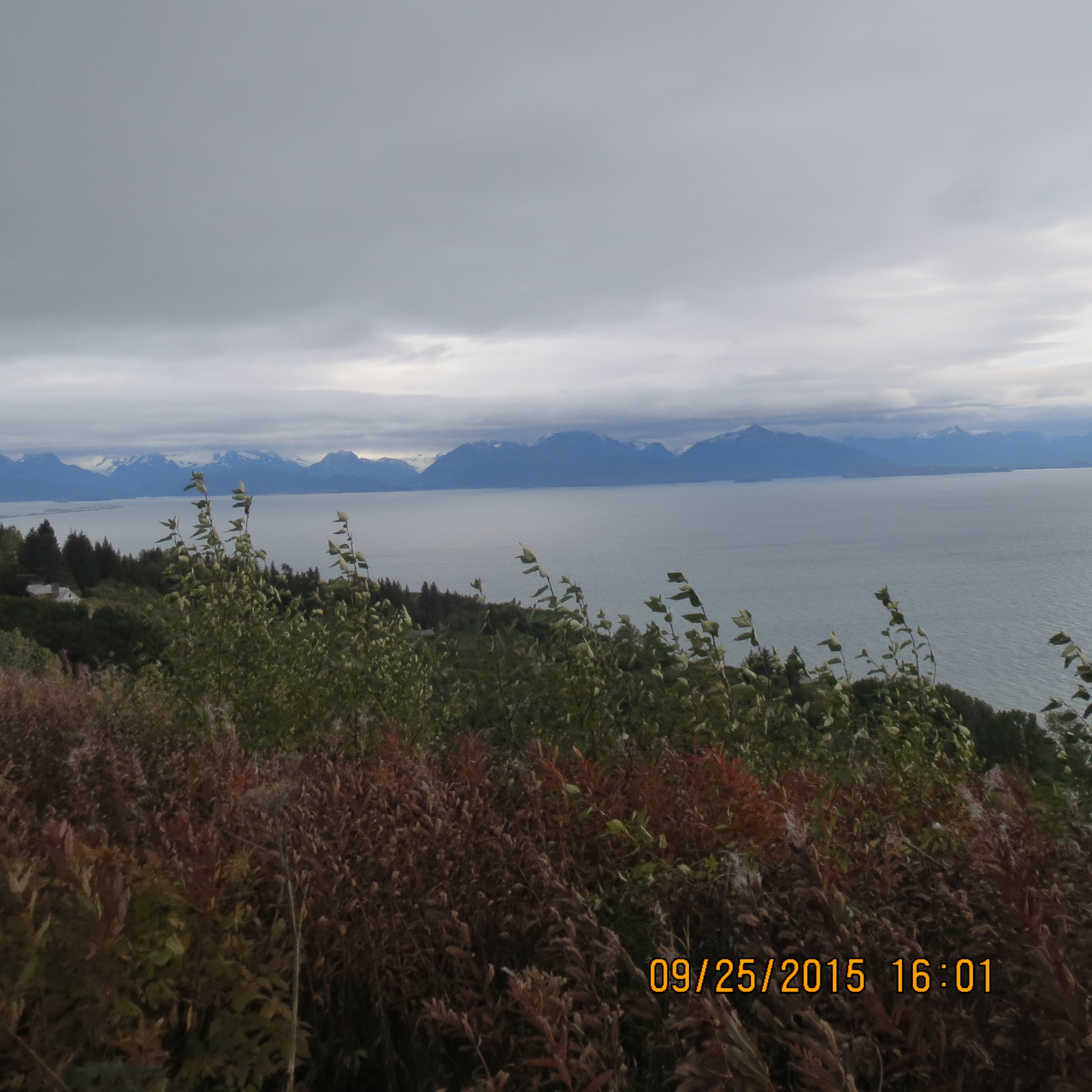 At 1000 we departed the Seward Resort ( a military recreation center-we used our retired Department of Defense IDs) and headed for our next destination, Homer. Our lunch break was at Odies Restaurant in the town of Soldatna and at 2:15 we did a photo stop at the Russian village of Ninilchik. Finally, at 4:10 we stopped for views of the Kachemak and Cook Bays and the Homer spit. The cloudy skies precluded the spectacular views of mountains east of the Kachemak Bay.