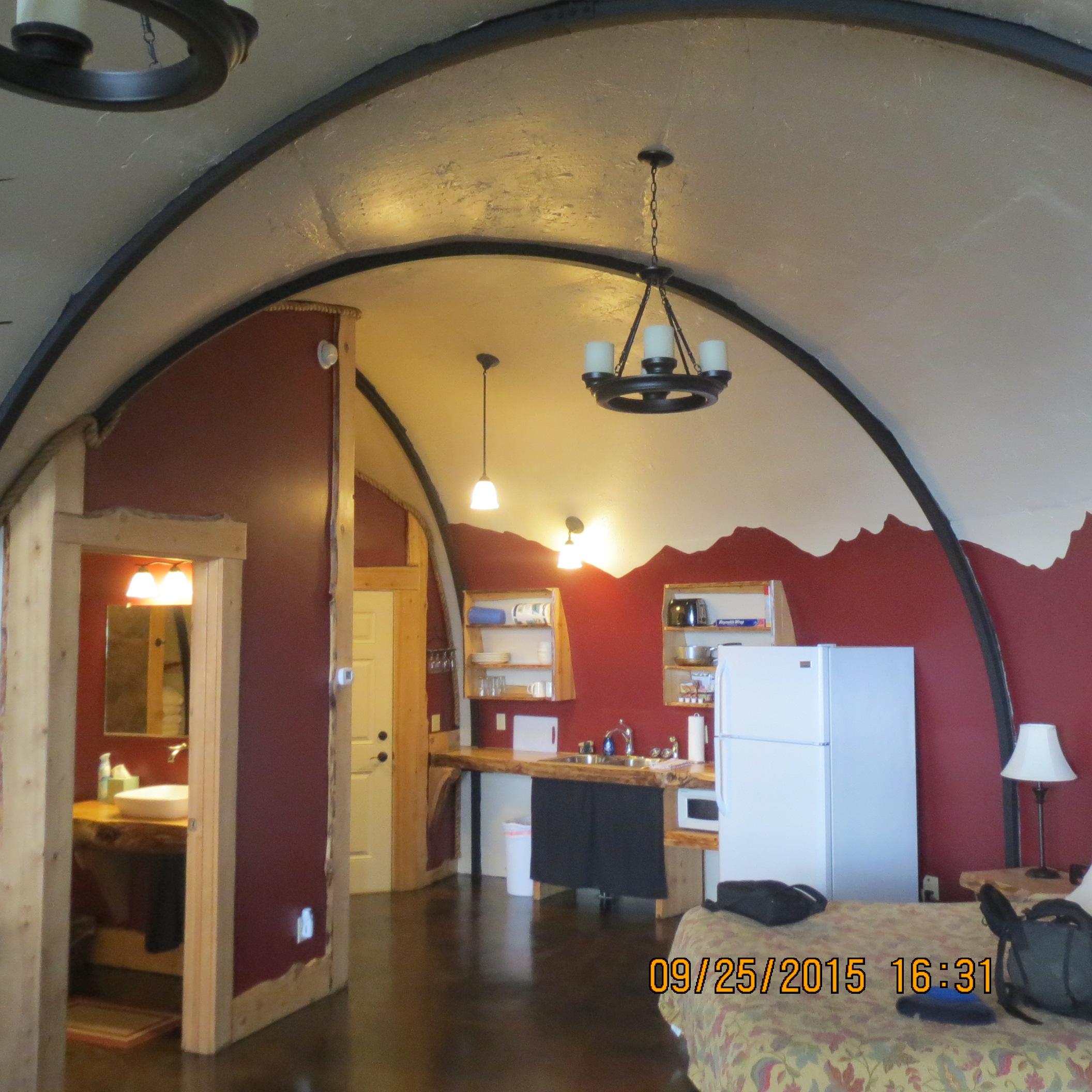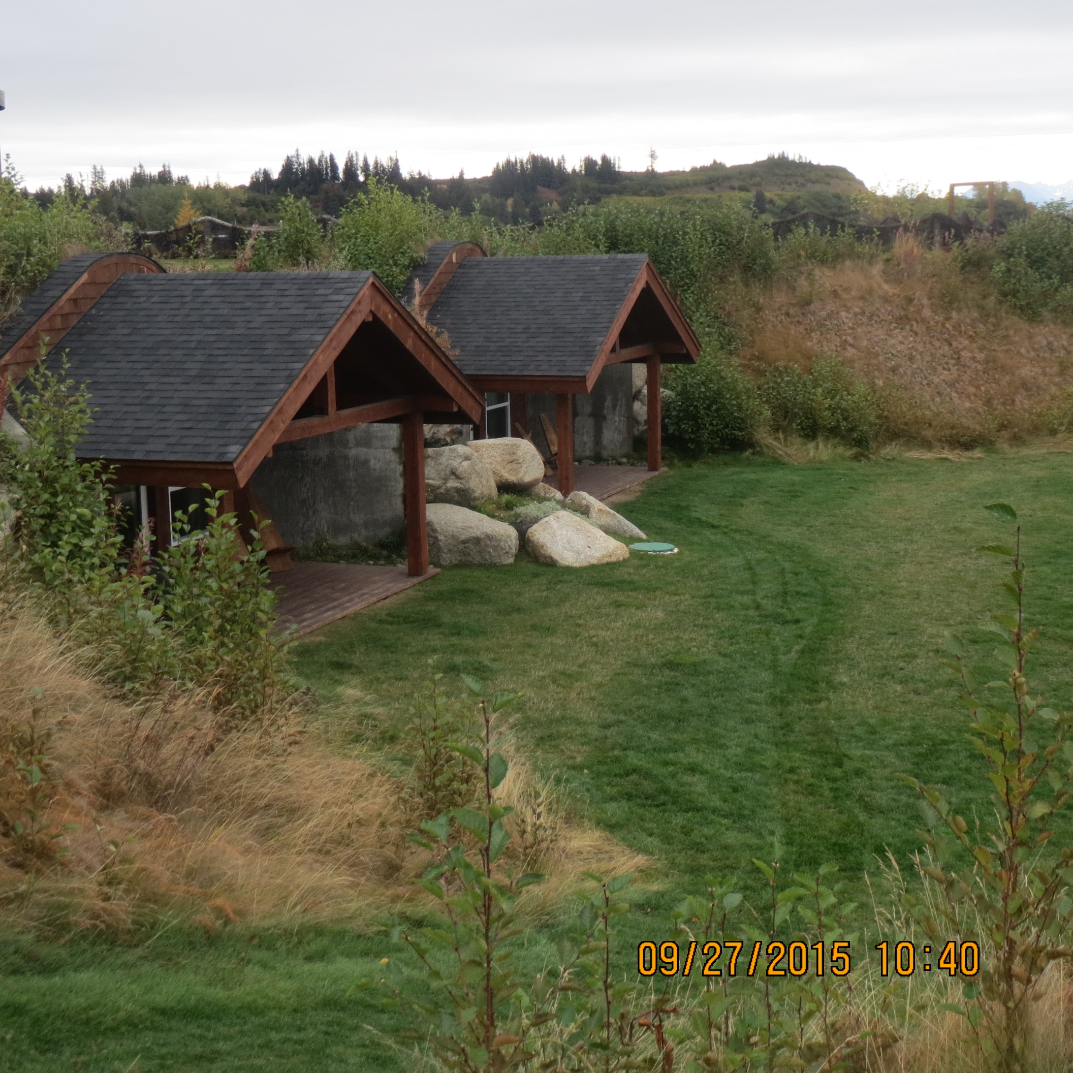We spent two nights in the unique Kenai Peninsula Suites in a subterranean unit! The unit was single room with two beds, a small kitchen and spectacular views of the bay from the front window. A spiral staircase descended into the ground and an entrance to two units via a circular building on the lawn. Anita had learned about the place from a friend in Anchorage