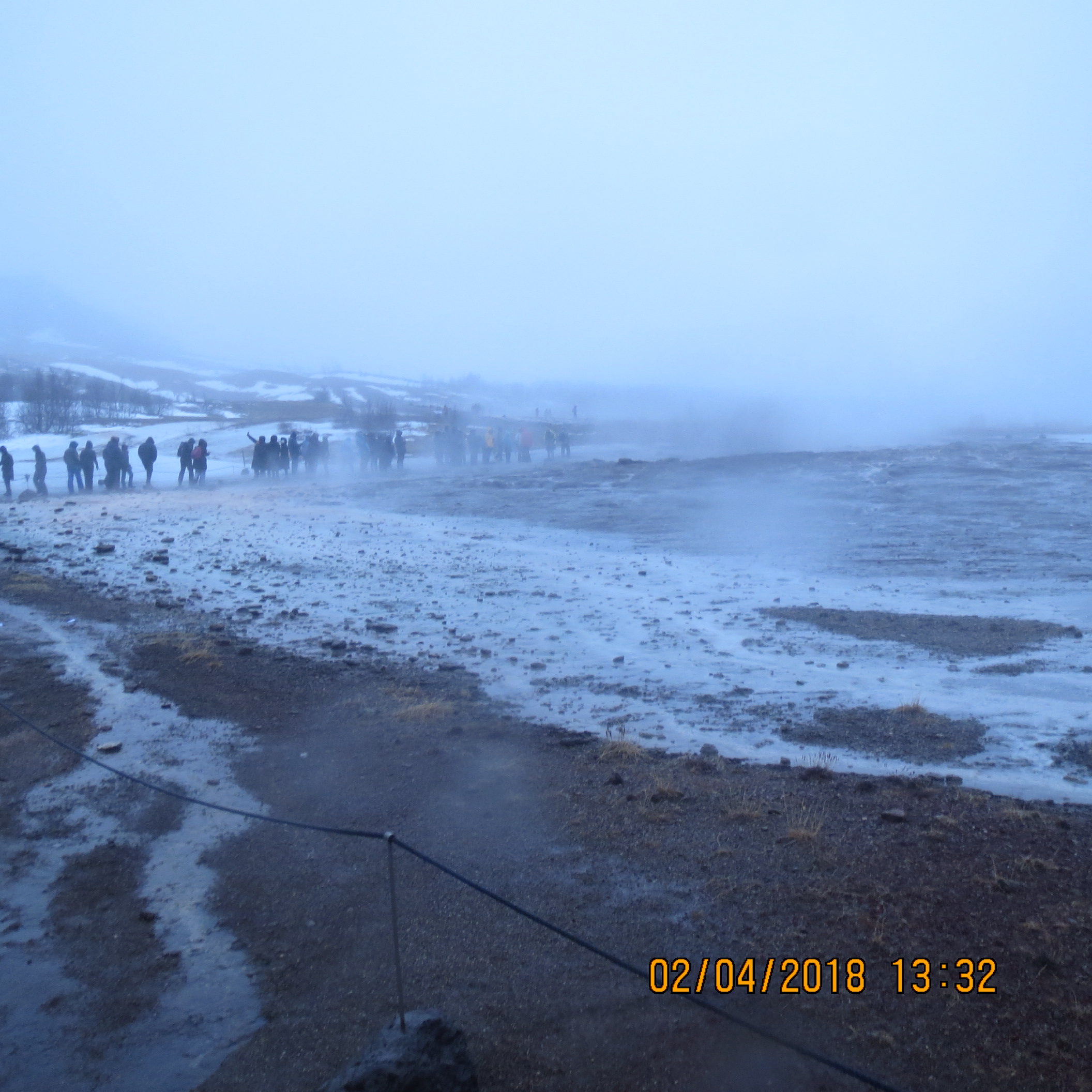 Our second stop was at Geysir for a look at hot geothermal springs and to observe Iceland's old faithful, Strokkur erupting with a hot water explosion. Unfortunately, it was pouring rain, I was soaked and decided not to stand around for the next gusher.
