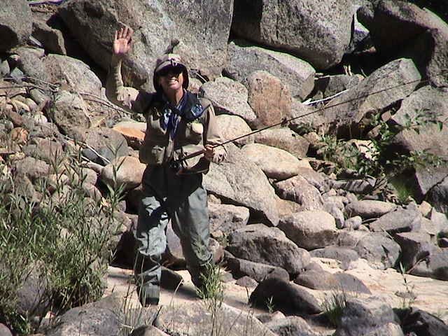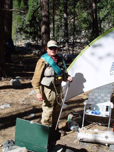 Our purpose was to head into the Golden Trout Wilderness via pack train for three nights of wilderness camping by the Kern River at a spot called "Hole in the Ground". This spot is about 12 miles from the pack station and at a spot rarely used by other campers/fishermen due to its rather inaccessible location. The trip had all been arranged by our good pal, Kerry, who did the same trip last year. Kerry and Dan have done many backpacking/fishing trips to this area over the years. In fact, they were introduced to this southern Kern River during a memorable backpacking trip made by Kerry, Dan and Bill back in 1982. However, we have put on a few years since then and now riding horses and letting the mules carry all our gear has become an attractive option to backpacking.