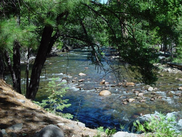 On Sept 1, 2005 Jeanne and I drove from Bonita up to Sequoia National Forest about 50 miles north of Kernville/Lake Isabella (about 350 miles total). Our destination was the Golden Trout Pack Station (www.goldentroutpacktrains.com)which turned out to be a very remote spot off a good dirt road, at about 7000' altitude and in the spectacular giant sequoia forests.