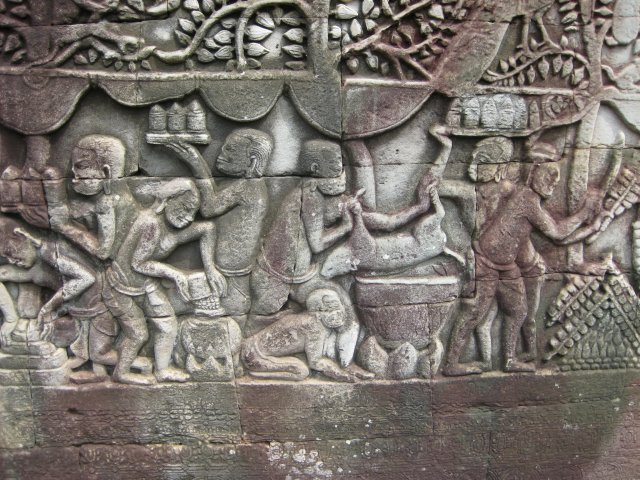 These tended to be a bit more fanciful than the ones at Bayon. There was one whole wall depicting the bad things that will happen in