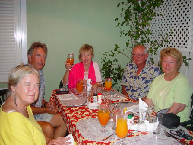 We reached our mooring spot at about 6:30PM with intentions of having dinner ashore at Bloody Mary's famous restaurant and bar. Unfortunately, they were booked up for dinner so Jeanne, Azasha and I went ashore to check the place out and visit the bar. This time it was my turn to visit with someone I knew. Remarkably, sitting next to us at the bar was my old pal, Marty, who I used to know from China Lake and Washington, DC days! Small world!